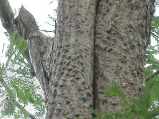 A característica mais marcante do urutau é a camuflagem. E, obviamente, os artifícios a que se lança para se esconder. Para começo de conversa ele não gosta muito de empoleirar-se como as outras aves, daquele jeito transversalmente ao poleiro. Até faz isso, dependendo da situação ou dos tipos de poleiros disponíveis em seu hábitat (figuras 2 e 3). O urutau gosta mesmo é de ficar na ponta de um tronco morto, de preferência que tenha largura parecida à de seu corpo, onde possa apoiar confortavelmente as asas e recostar a cauda.