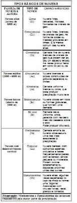 A tabela abaixo lista os 10 tipos básicos de nuvens que são reconhecidos internacionalmente.
