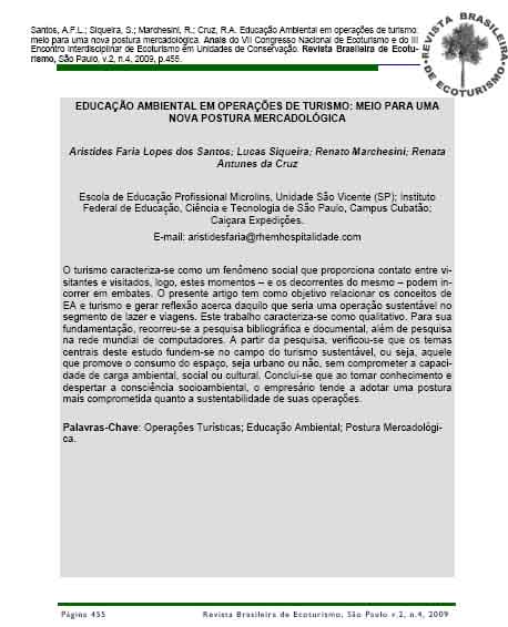 – Educação Ambiental em operações de turismo: meio para uma nova postura mercadológica. (confira abaixo).