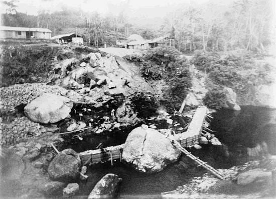 Abaixo: Linhas de tubos da instalação hidrelétrica de Itatinga, em 1912: