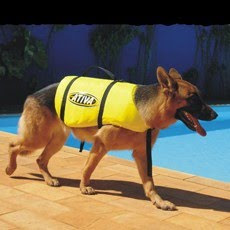Este evita, evita que ele tombe para os lados, ajustável, mantém os cachorrinhos firmes e confortáveis, além de deixar o pescoço e as patas completamente livres. Além disto tem uma argola na parte da frente para que o cão possa ser “rebocado”. Segundo o Site Bem Legaus é fabricado em diversos tamanhos, e custa 89,95 dólares. Obs..:: mas tem o mesmo problema das bóias infantis que pode ocorrer do usuário ficar com as pernas para o ar? Uma vez que a bóia está atada ao corpo do cachorro ele não vai conseguir escapar e pode se afogar.