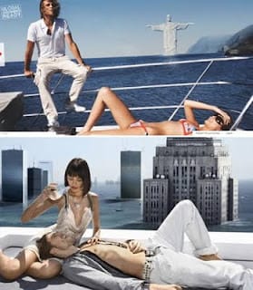 Diesel, a fabricante italiana de roupas, colocou publicidade nos jornais, revistas e outdoors com modelos posando com roupas da marca num mundo afectado pelo aquecimento global. Nas fotos acima, vê-se o Cristo Redentor coberto de água até aos pés e Nova York praticamente submersa.