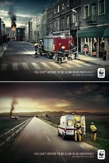 “Você não pode ser lento numa emergência. Aja agora pelo planeta”.