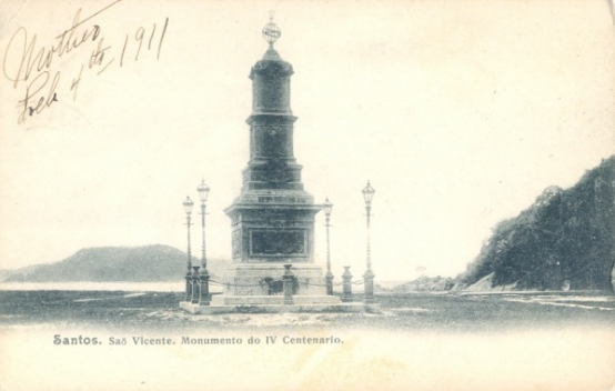 Foto Antiga São Vicente SP: (22-04-1900) Monumento do 4º Centenário do Descobrimento do Brasil.
