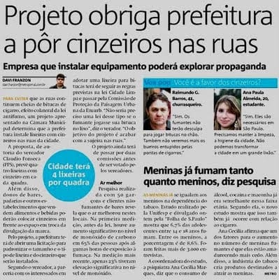 Em São Paulo Projeto de Lei 526/09 tenta auxiliar sobre Cinzeiros Públicos