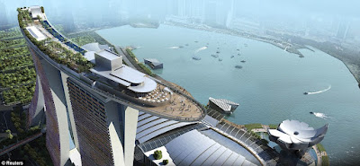 Poderíamos falar dos quartos confortáveis, do spa relaxante, dos shows inesquecíveis, da arte moderna na decoração, dos restaurantes gourmets, dos bares e baladas animados, das lojas de grife e do cassino luxuoso, mas isto tudo nós podemos encontrar em outros hotéis butiques pelo mundo. O diferencial do Marina Bay Sands é a piscina mesmo.