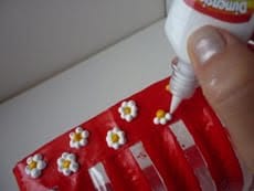 Foto 09 – Após secagem, comece a decorar com a tinta dimensional na cor amarela, criando o miolo das flores;