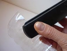 Foto 01 – Com o auxílio da tesoura, separe a parte superior da garrafa;