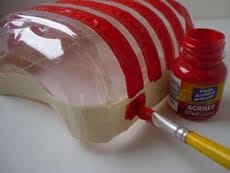 Foto 08 – Passe duas demãos de tinta acrílica brilhante na cor vermelha, somente nas áreas de fita adesiva;