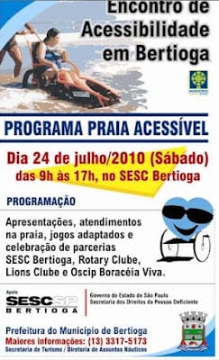 Evento especial para o dia 24 julho, com a parceria do SESC-Bertioga: Encontro Acessibilidade em Bertioga.