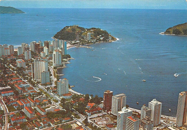 Foto Antiga São Vicente SP: Reparem ao lado esquerdo a Ilha Porchat, no meio a Baía de São Vicente e ao lado direito o Parque Estadual Xixová Japuí.