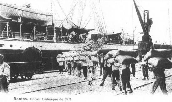 Embarque de café, em outra imagem do início do século XX