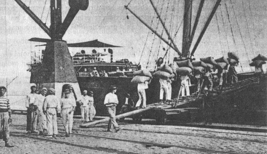 Embarque de café no Porto de Santos em 1920, Acervo do Estado de SP.