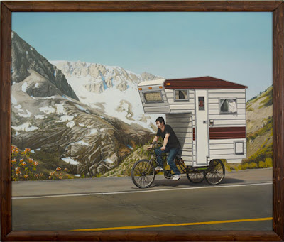 Atendendo em 2008 ao desafio, o artista americano Kevin Cyr desenvolveu essa bicicleta toda projetada para fazer um acampamento fora da cidade. A bicicleta de três rodas (tricicleta?) se transforma em uma casa temporária para passar o fim de semana no campo, mas infelizmente nenhuma imagem do interior do veículo foi divulgada para podermos analisar a organização e o mobiliário.