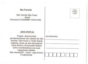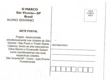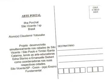 Os alunos do do Cesin em São Vicente/SP enviaram os postais que produziram sobre a cidade via Correio para os alunos da 7°série da cidade de Timbó /SC que também enviaram postais de sua Cidade.