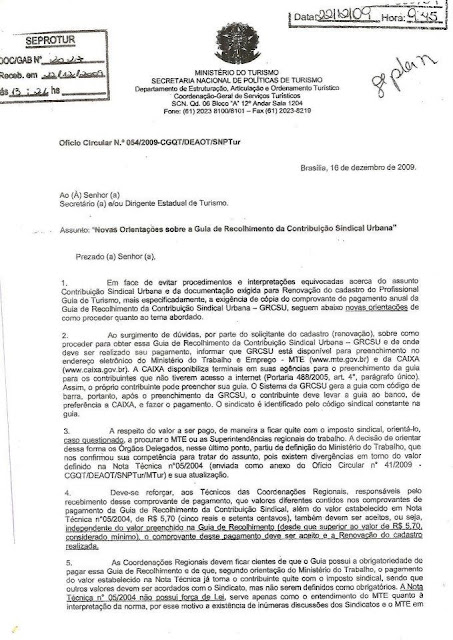 Abaixo para Conhecimento Ofício Circular 054/2009 – Ministério do Turismo