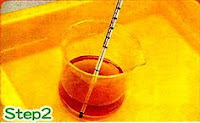 2. Misture o açúcar mascavo com água quente. Deixar esfriar. Depois de frio despejar na metade de baixo da garrafa.