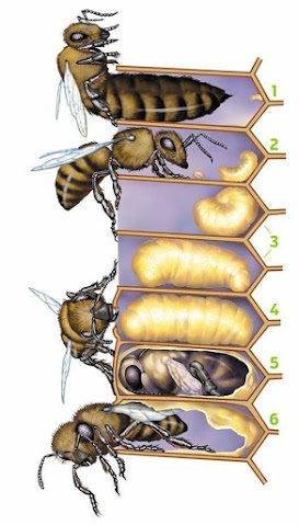 1 Ovo, 2,3 e 4 Estágios de Larva, 5 Pupa e 6 Adulto.