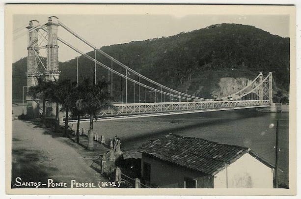 Fotografia antiga Ponte Pênsil São Vicente SP (1952).