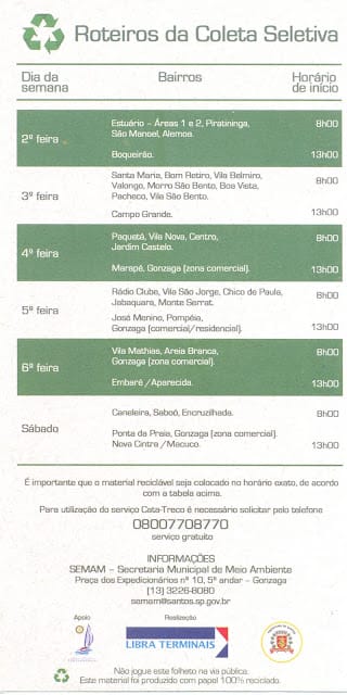 Coleta Seletiva em Santos /SP – Dias e Horários – Participe!