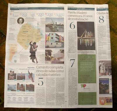5)Para fazer a boca do saquinho, pegue uma parte da ponta de cima do jornal e enfie para dentro da aba que você dobrou por último, fazendo-a desaparecer lá dentro.