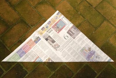 • Você pode usar uma, duas ou até três folhas de jornal juntas, para que o saquinho fique mais resistente.