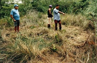 Pesquisadores e testemunhas no local de pouso do disco voador