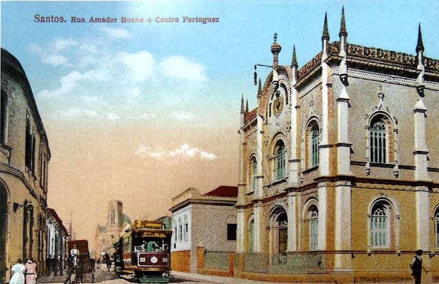 Desejando acompanhar o impulso sócio-cultural da sociedade santista, no final do século XIX, o quadro associativo do Real Centro Português passou a querer ter sua sede própria e com esse propósito adquiriu o terreno de esquina da Rua Amador Bueno com a Rua Martim Afonso.