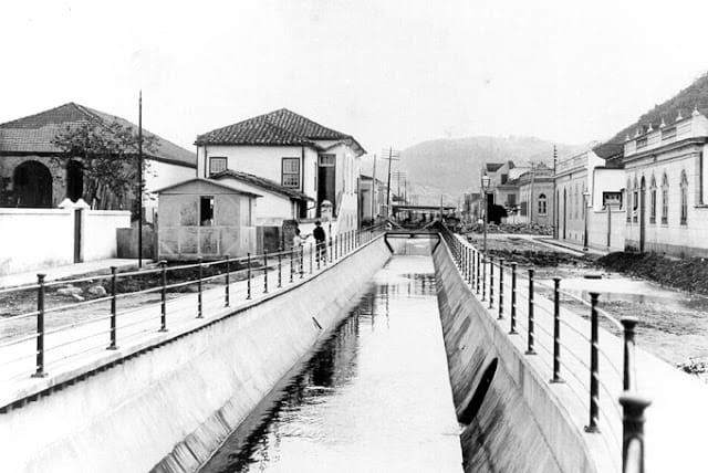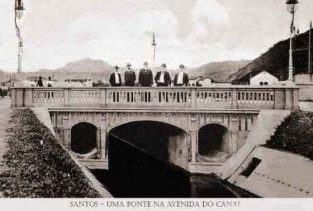 Vista do canal 1, na altura da Vila Mathias na quadra entre as atuais ruas Brás Cubas e av. Senador Feijó, esquina com a av. Rangel Pestana. Essa imagem pertence ao acervo iconográfico da Fundação Arquivo e Memória de Santos. (s.d.).