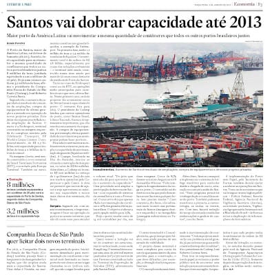 Em 2012, o porto que está sempre em crescimento, apresenta mais projetos de ampliação.