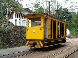 Os bondes foram construídos nas oficinas da Cia. Docas de Santos a partir de material proveniente dos bondes elétricos desativados do Guarujá. Os três vagões de passageiros são de antigos bondes a burro da cidade de Santos.