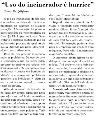 Inceneração de Lixo representa perigo – Uso do Incinerador é Burrice