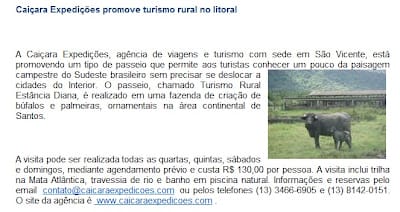 Informativo Convention Visitors Bureau Santos – Turismo Rural no Litoral de São Paulo