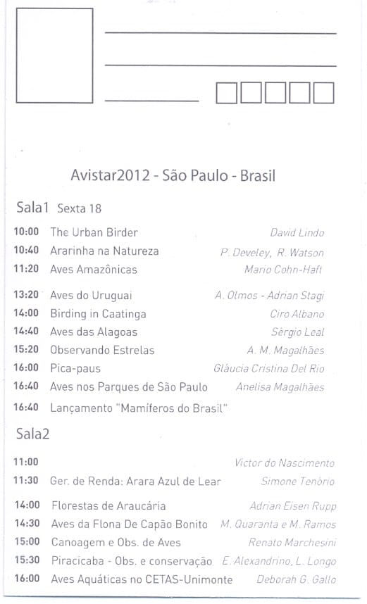 Este foi o cartão postal / programação da AVISTAR 2012 do dia 18 de maio (sexta-feira).