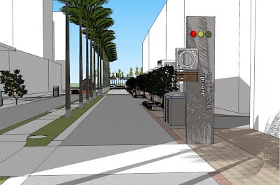 será colocado um totem de concreto e madeira ecológica. O piso de
