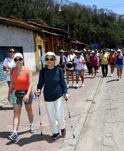 Com animação desde as seis da manhã, o grupo chegou a Ilhabela debaixo de sol e com um calor de 34 graus. Recebeu orientação do guia de turismo Renato Marchesini que ainda sorteou algumas lembranças da Rota Passos dos Jesuítas e partiram para uma caminhada de quatro horas.
