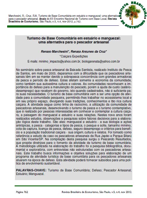 Artigo Científico de Profissionais de Renato Marchesini é Publicado na Revista Brasileira de Ecoturismo – Volume 5, nº 4. Novembro 2012