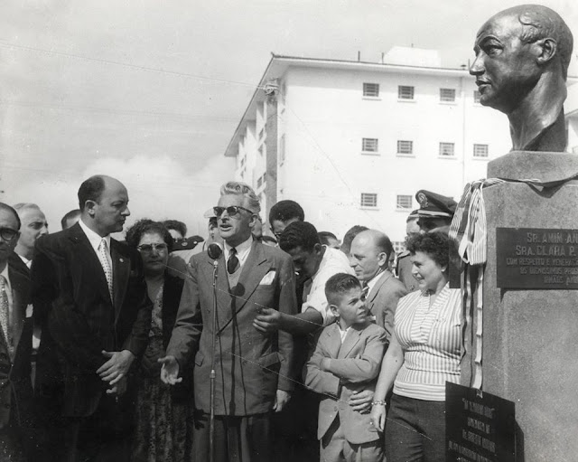 Foto da inauguração da Cidade Ocian, com Roberto Andraus e autoridades paulistas (27-05-1956).