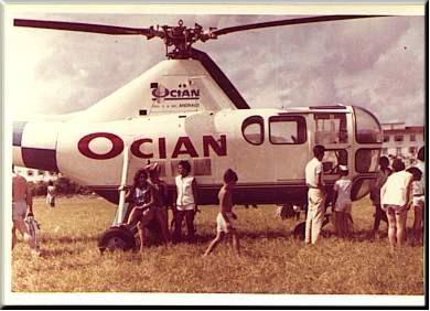 Helicóptero da Incorporadora Andraus chamando atenção na Cidade Ocians (década de 70).
