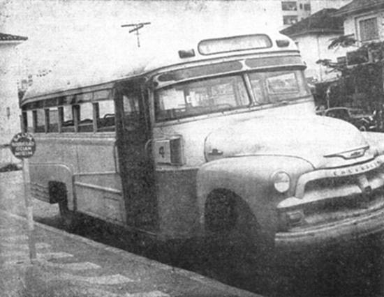 A linha de ônibus que ia de São Vicente até a Cidade Ocian, também na década de 50