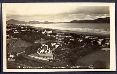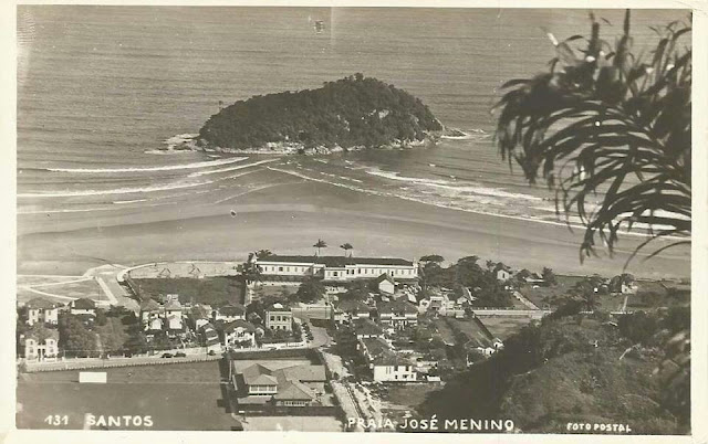 Cartão Postal Fotográfico Antigo Santos SP (aprox. 1945) Praia do José Menino, O Hotel Internacional, A Ilha de Urubuqueçaba e o tradicional Clube dos Ingleses.