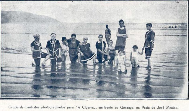 Foto Antiga Santos SP: (1918) Banhistas na Praia José Menino.