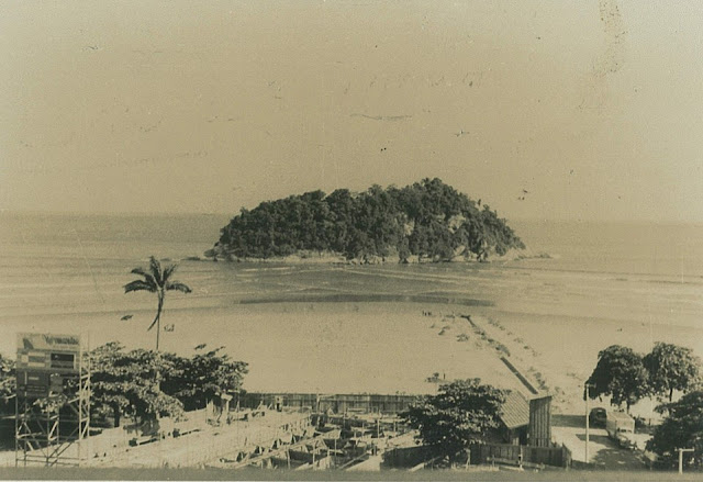Foto Antiga Santos SP: Ilha Urubuqueçaba na Praia do José Menino (s.d.).