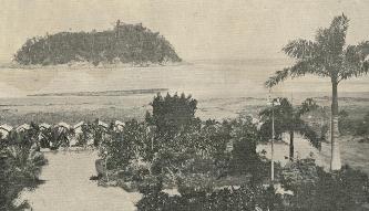 Foto Antiga Santos SP: (1922) Ilha Urubuqueçaba, Hotel Internacional e Praia do José Menino.