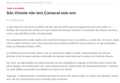Economia – “Será o Carnaval da economia”, explica o secretário, acrescentando que “a ordem e os dias das apresentações das escolas de samba serão definidos por sorteio. Foi a forma que encontramos para que a Cidade não ficasse sem Carnaval, diante das dívidas deixadas pela administração anterior”.