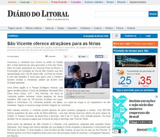 Quem quiser conhecer os pontos turísticos de outra perspectiva pode ainda fazer um tour náutico pelo mar e rios da Cidade. As opções vão desde um percurso de uma hora pela orla do Município até uma volta completa pela Ilha de São Vicente. Também é possível conhecer os mangues da Cidade de canoa. O passeio conta com instruções de canoagem.