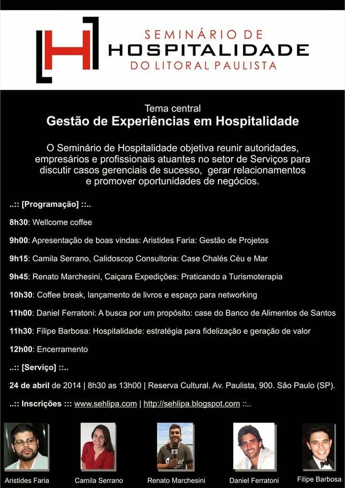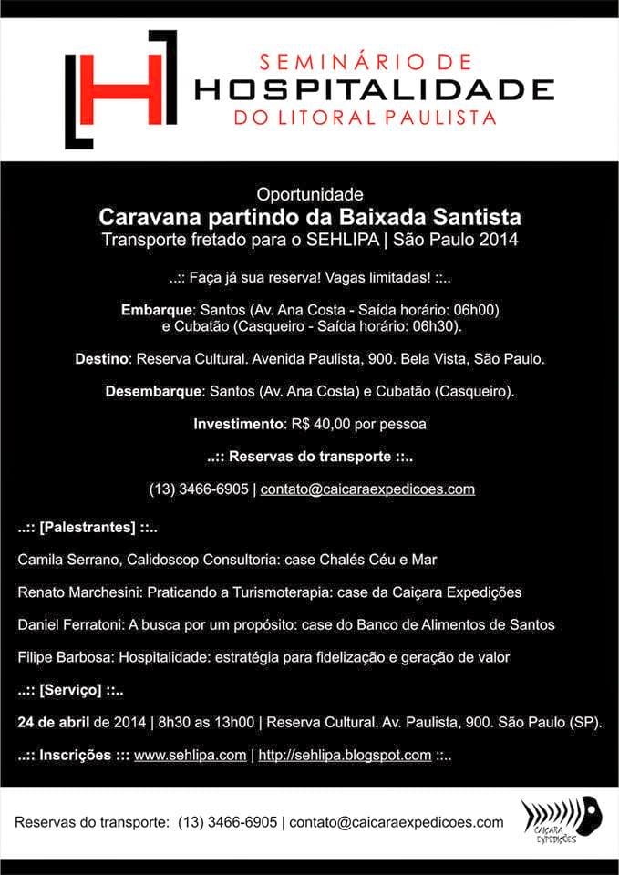 A cidade de São Paulo receberá no próximo dia 24 de abril a terceira edição do Seminário de Hospitalidade do Litoral Paulista (SEHLIPA). O evento, realizado tradicionalmente na Baixada Santista, terá uma edição especial realizada na capital do estado.