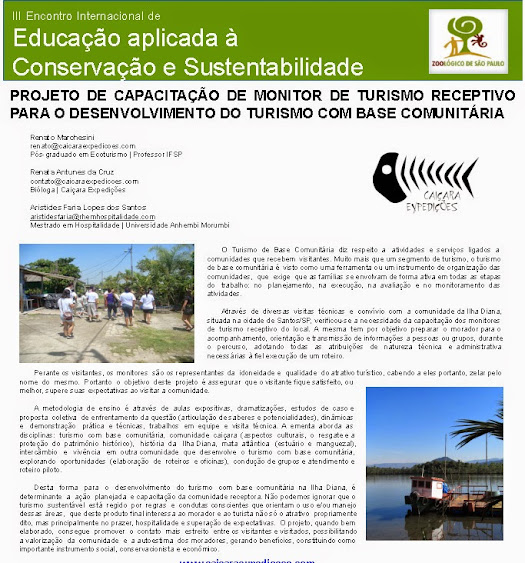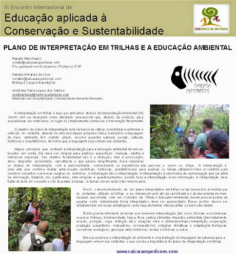 Iremos neste Sábado e Domingo (27 e 28 de Setembro) Apresentar 2 Trabalhos no III Encontro Internacional de Educação Aplicada à Conservação e Sustentabilidade.