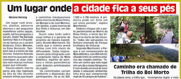 Clipping: Jornal dos Morros / Um lugar onde a cidade fica a seus pés (Trilhas do Voturuá). Santos e São Vicente.