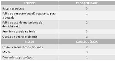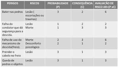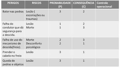 Tabela 1. Exemplo de perigos e riscos da atividade de rapel